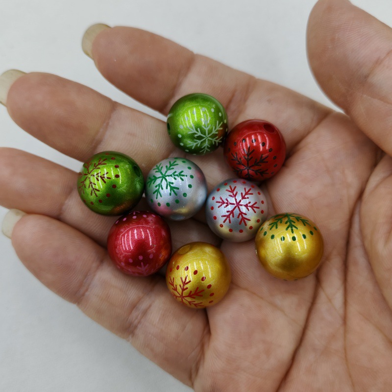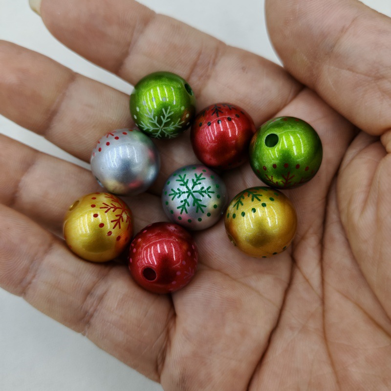 These 16mm acrylic beads feature a rich metallic finish and delicate snowflake patterns in festive gold, red, green, and silver. Their smooth, round shape and shimmering surface add a cheerful sparkle to any holiday project. Ideal for crafters, these beads bring vibrant charm to Christmas jewelry, decorations, and handmade gifts. String them on garlands or craft eye-catching bracelets that spread holiday cheer.