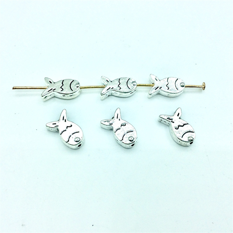 These small fish beads feature a charming antique silver shine, with delicate wave and eye details etched on each piece. Measuring a compact 8x12mm, their smooth alloy texture adds subtle aquatic flair to any jewelry or craft project.