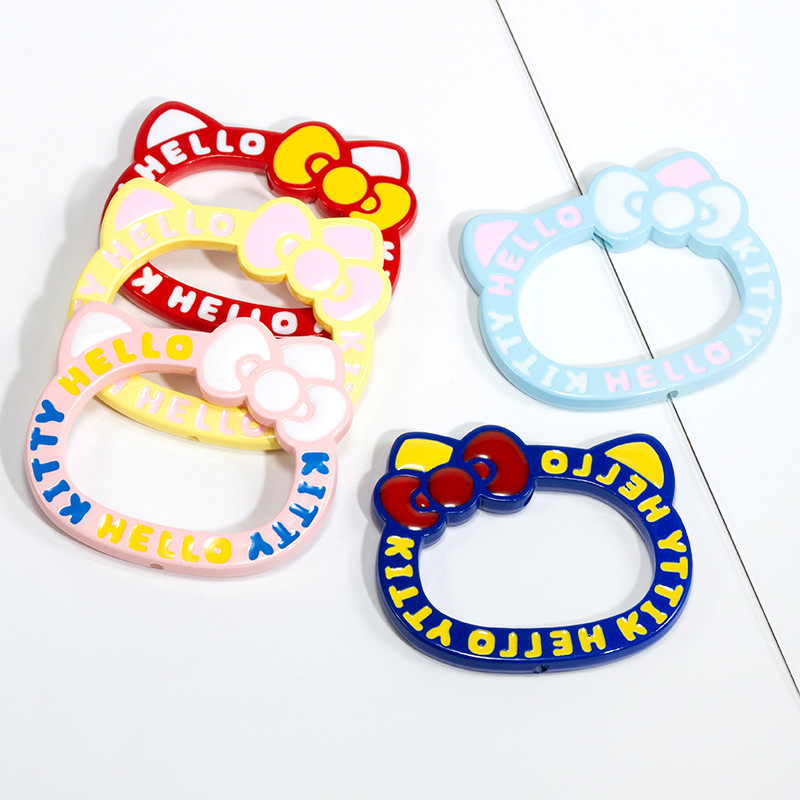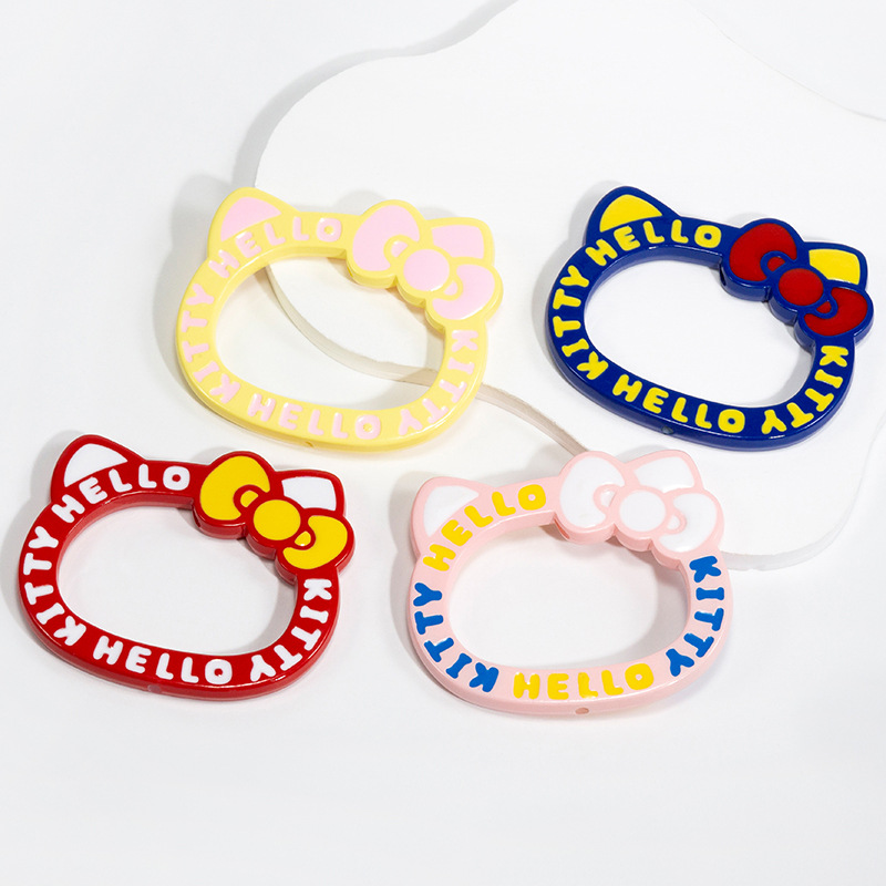 Add playful charm to your DIY projects with these 72mm acrylic Hello Kitty bead frames, bursting with vibrant colors like pastel pink, royal blue, and bright red. Their distinctive shape features iconic kitty ears and a bow, cleverly combined with bold “Hello Kitty” lettering that wraps neatly around the open center.