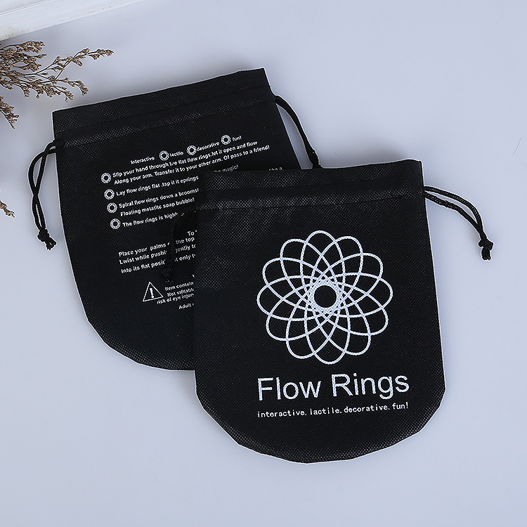 Slip this sleek black drawstring pouch into your crafting kit for a stylish, practical storage solution. Featuring a crisp white geometric flow ring printed on smooth non-woven fabric, it blends modern minimalism with kinetic art.