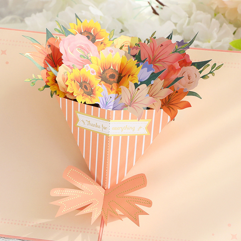 1pc 15*20cm Mother’S Day 3D Colorful Bouquet Greeting Cards