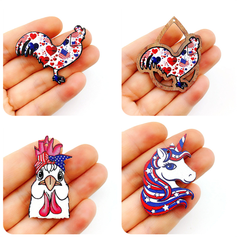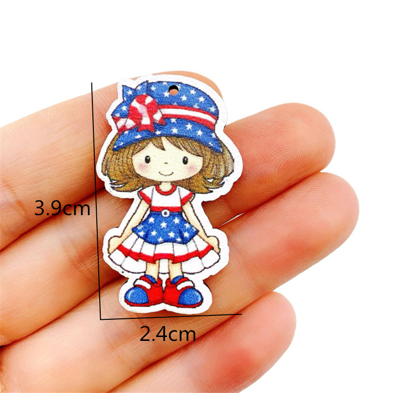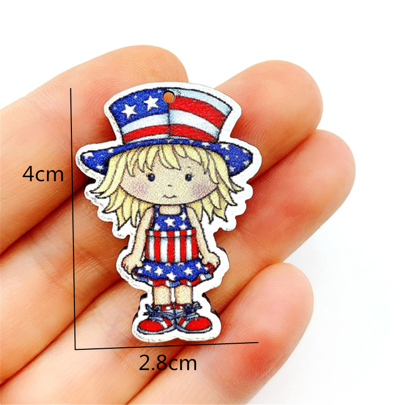 20pcs Independence Day Theme Single-Sided Printed Wooden Chip Pendants
