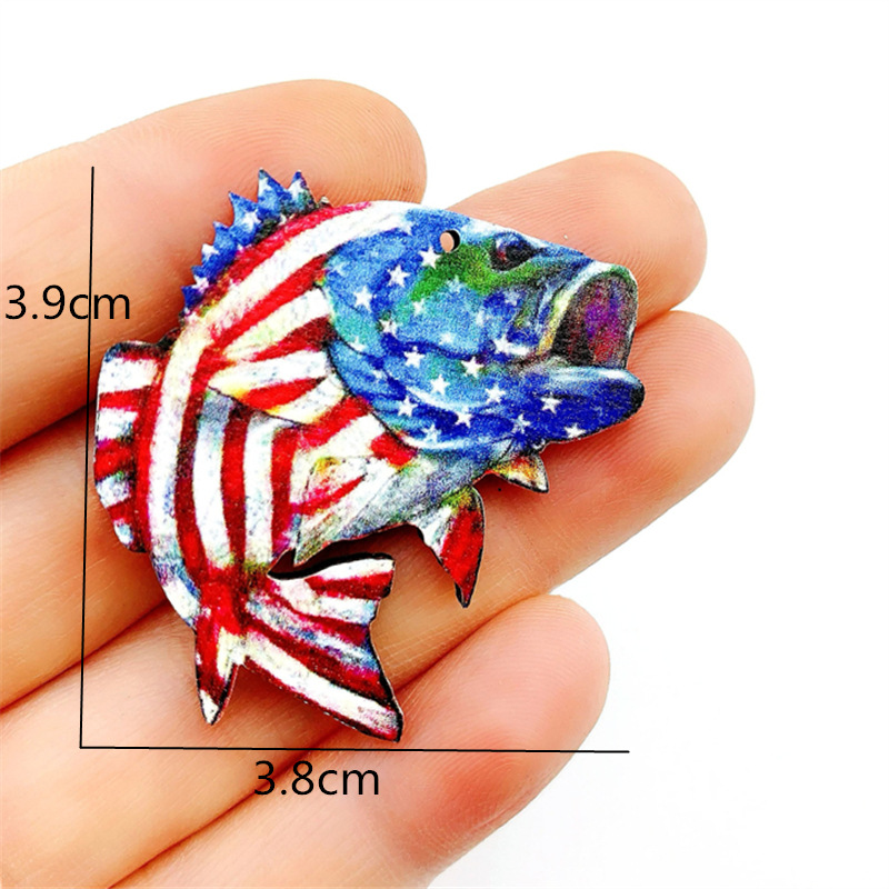 30pcs Independence Day Flag Pattern Print Fish&Popcorn Shaped Acrylic Pendants