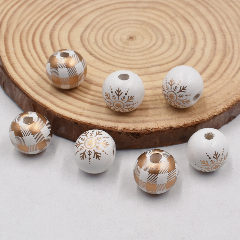 Imagine your holiday crafts glowing with charming 16mm wooden beads. Each bead features a festive white background decorated with delicate gold snowflakes or a luxurious gold check pattern, adding a cozy, rustic touch to any project.