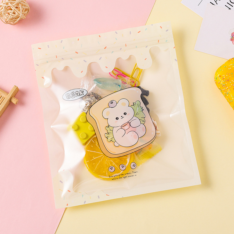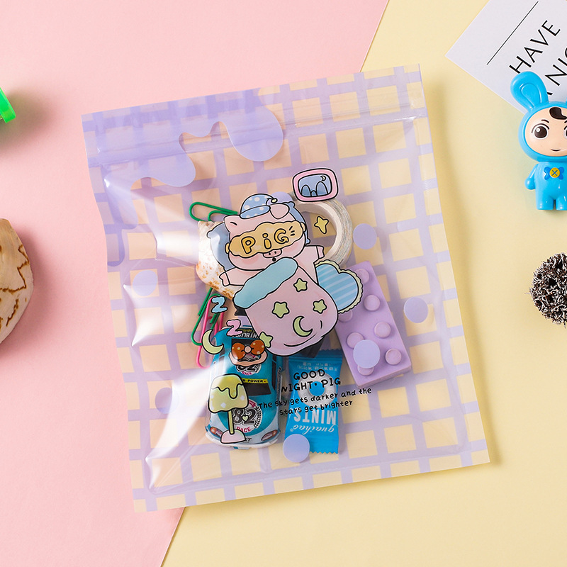 These ziplock bags add a playful touch to everyday organization with pastel grids and charming cartoon characters like bunnies, bears, and pigs. Each 15×19 cm bag features soft pink, lavender, or cream backgrounds decorated with sweet animal illustrations, ideal for storing beads, small craft supplies, or party favors.