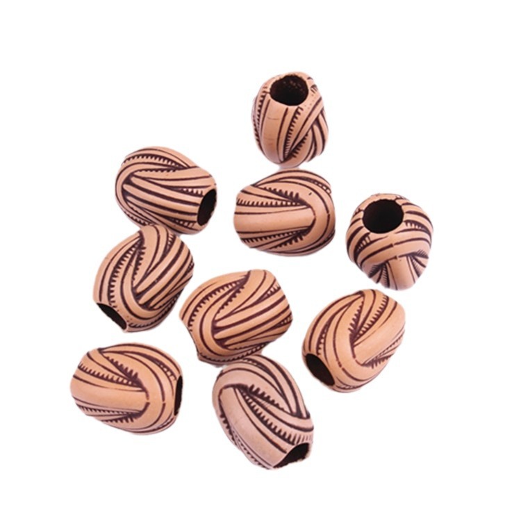 These wood-toned plastic hair beads feature an antique twisted pattern, adding rich texture and vintage charm to any hairstyle. Warm tan bases are etched with deep brown lines spiraling elegantly around each bead’s rounded form.