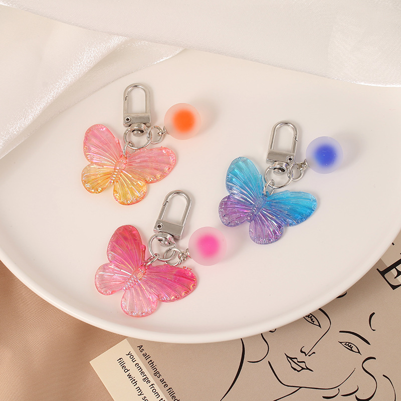 Add a whimsical touch to your daily essentials with these Acrylic Gradual Butterfly Keychains. Each features a delicate butterfly charm with translucent wings that blend two soft hues into a dreamy gradient.