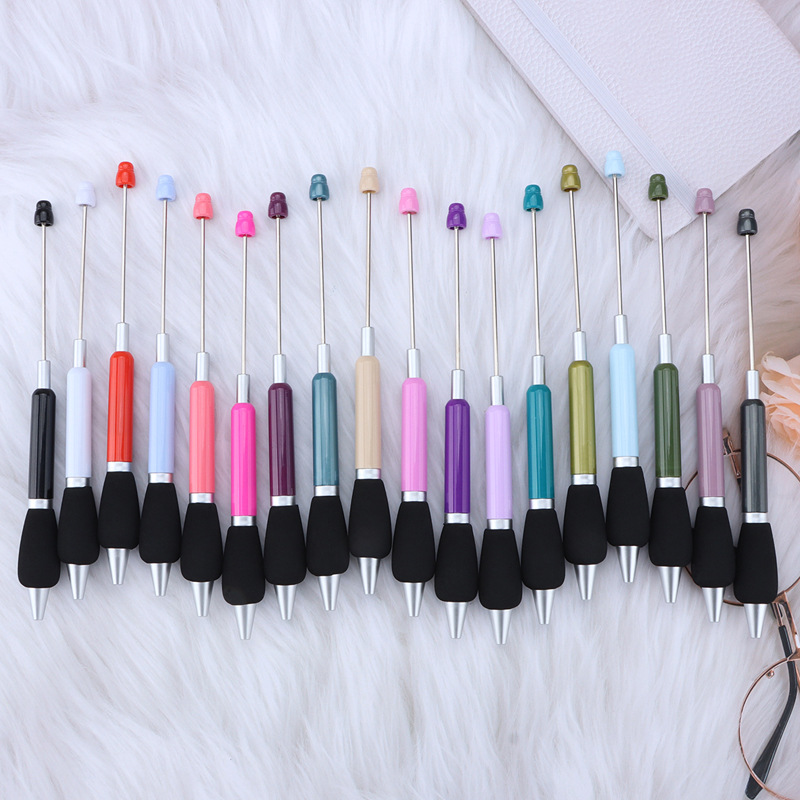 These beadable ballpoint pens boast a sleek, slim silhouette complemented by a soft black sponge grip for comfortable, long writing sessions. Their vibrant color range spans classic black and white to bold reds, purples, and soothing pastels.