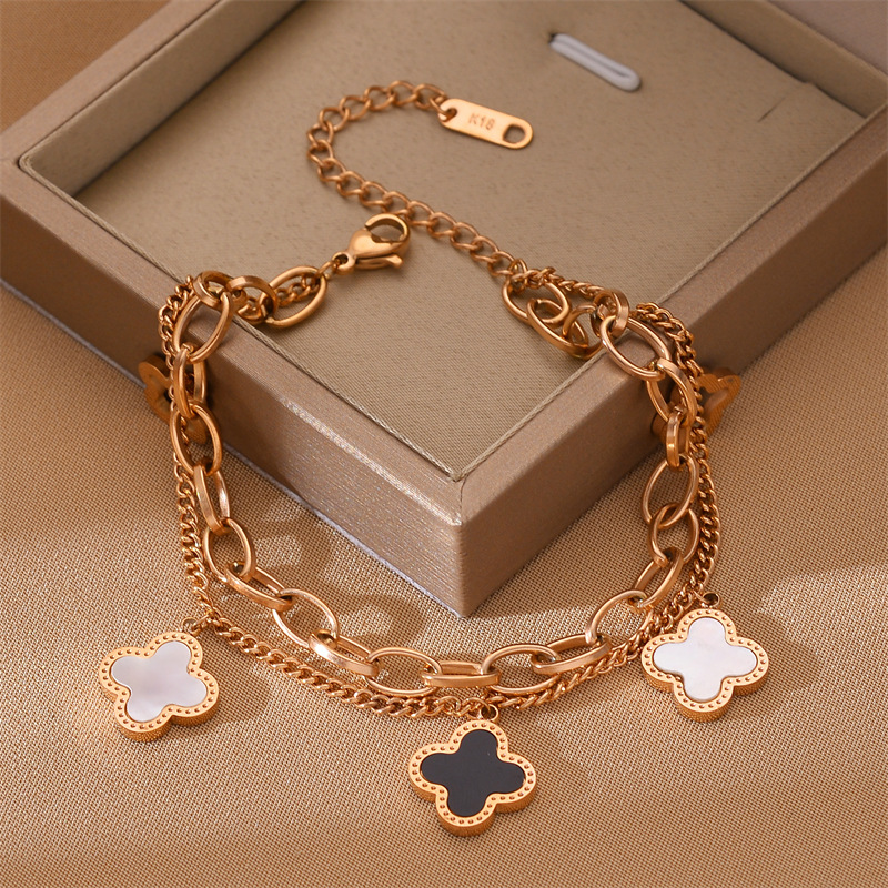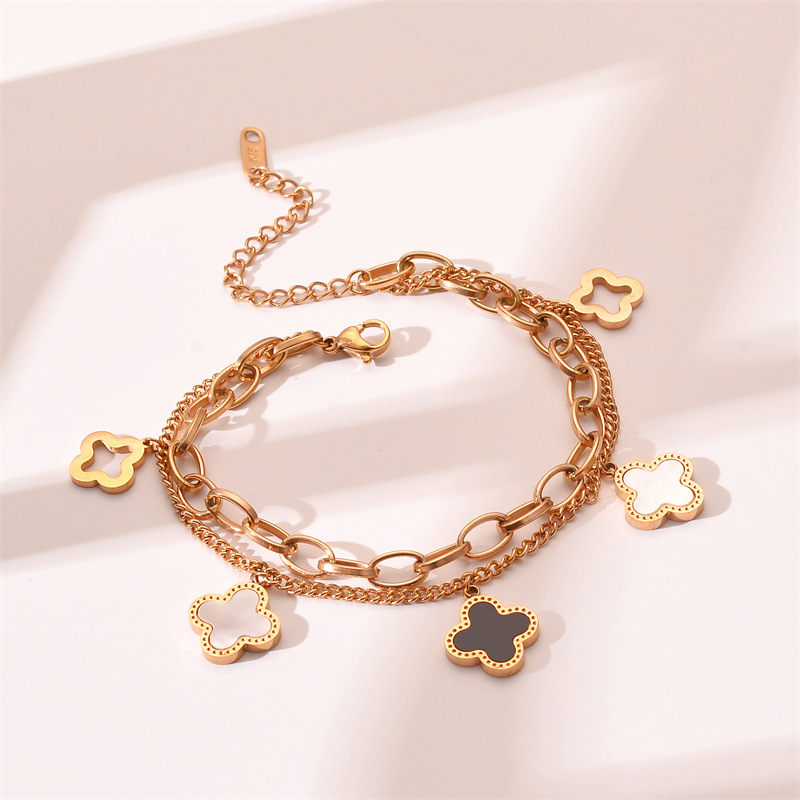 Four Leaf Clover Double Layer Chain Titanium Steel Bracelet