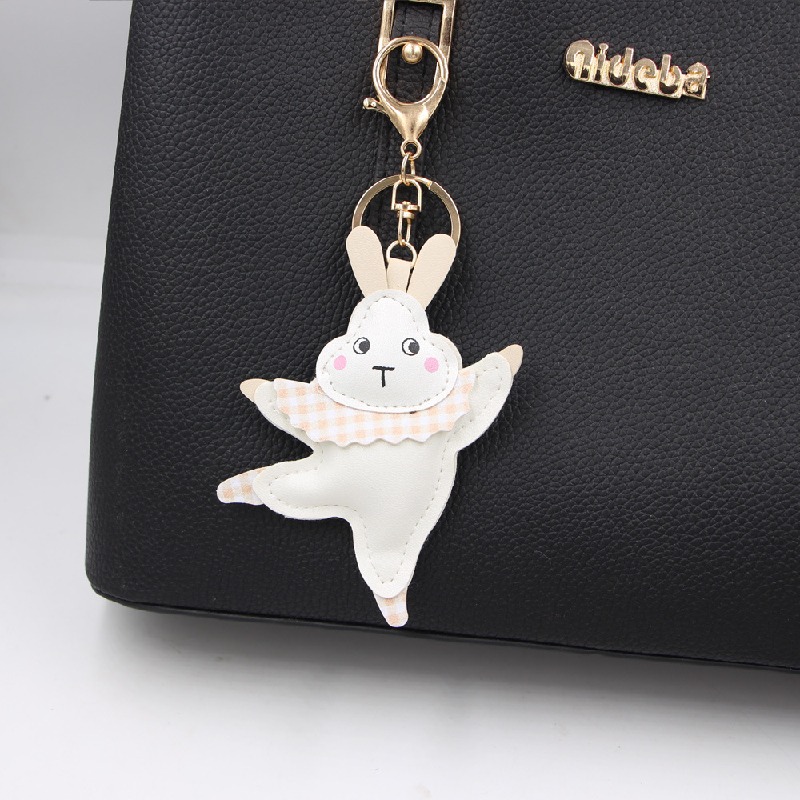 Imagine a little bunny caught mid-dance, brimming with joyful motion and charm. This Leather Ballet Dancing Rabbit Keychain is crafted from smooth PU leather in a delightful pastel palette of pink, white, blue, and brown.