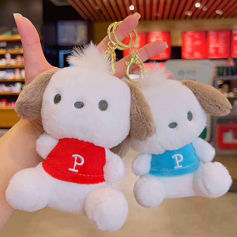 Soft, cuddly, and irresistibly charming, these plush dog keychains sport tiny pastel sweaters that add a playful splash of color. Each dog features a gentle, round face with embroidered eyes and nose, while floppy ears and a fluffy tail create an endearing look.