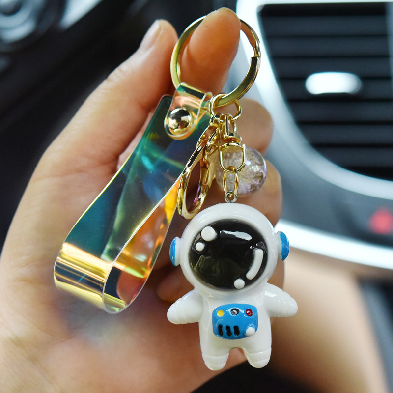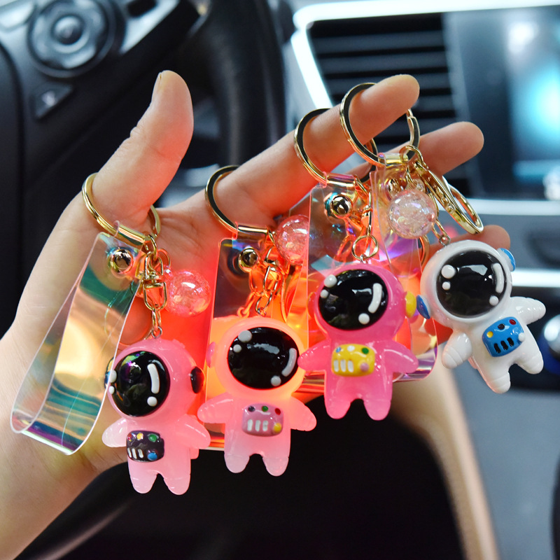Brighten your bags and keys with this resin cartoon astronaut keychain—a playful splash of color and charm. Featuring a vivid pink suit, shiny black visor, and a cheerful miniature control panel, it brings a whimsical space explorer to life in a compact, durable form.