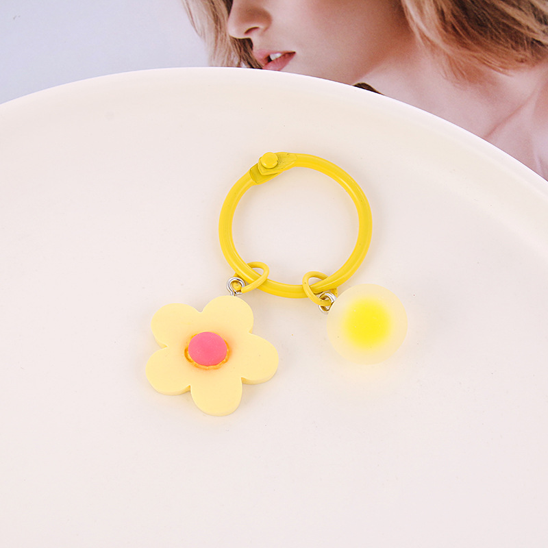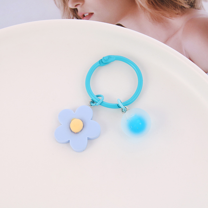 Brighten your creations with these Resin Creative Color Flower Keychains. Each features a vibrant flower charm paired with a frosted round pendant in solid hues like pink, blue, yellow, and purple. Their playful design adds a burst of color that instantly enlivens any accessory or DIY project.