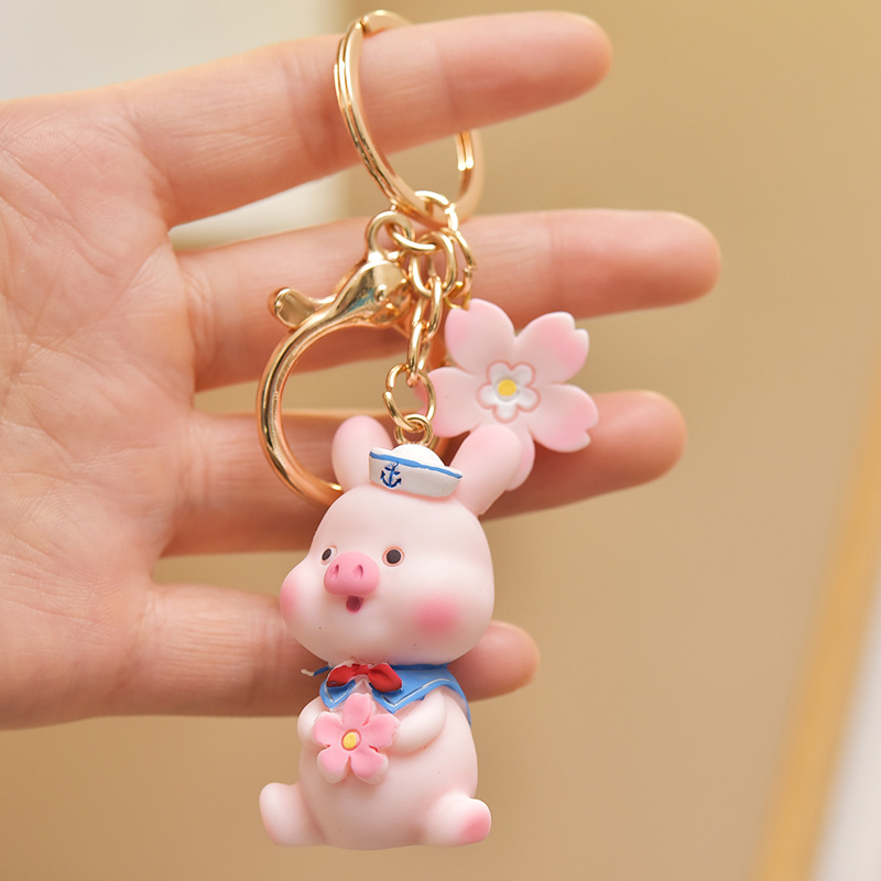 Resin Cute Pink Pig Keychain